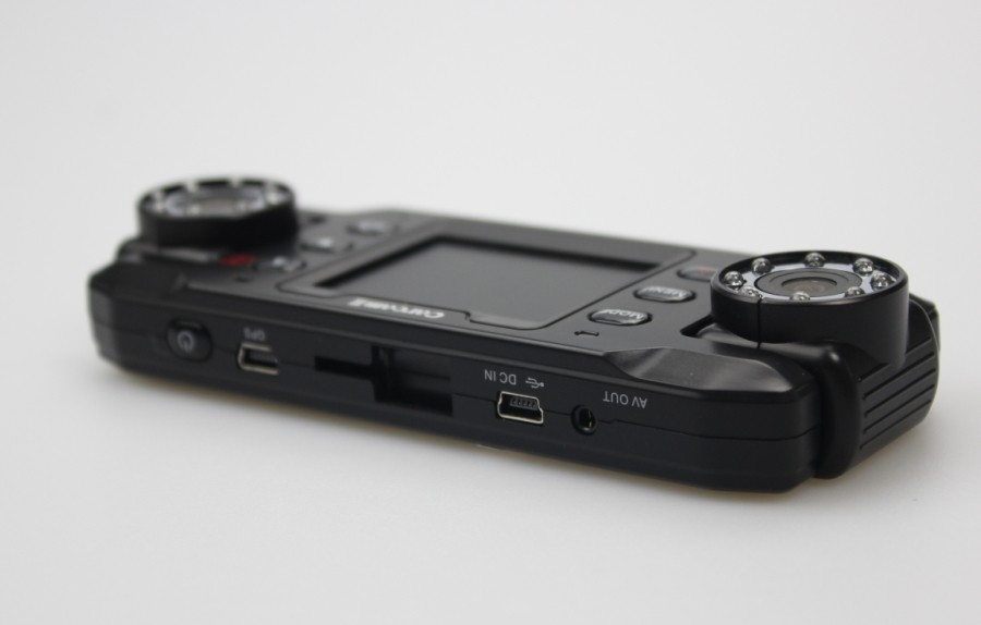 * 2.3 inch LCD screen * Built-in 140 degree high resolution dual wide angle lens * Dual 180 degree rotating lens * Built-in G-sensor (global synchronization), with ¡±event recording¡± lock function * Support external GPS logger, recording whole event situation * Password protection function, can¡¯t release any recording if without correct password * Resolution: 1280*480P/30fps * No seam recording function * One key for silent recording * Event recording function * Noninterference at digital TV and navigator units in car * Anti-shake function * Loop recording * Micro SD card up to 32G (At least use 4GB class 6 Micro SD) * AV out function supported * Support current of DC12-24V, and it can be used for large vans, trucks and buses