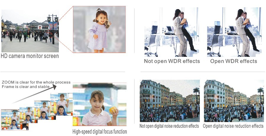 * 1/2.8" SONY 1.3 Megapixel CMOS sensor * 18x zoom, F=5-90mm, F1.6-F3.5 * AF, AE,AWB control * International standard BT1120,SMPTE296M with YUV format, LVDS output * Flash light auto/off/manual * ISO: auto/manual * Auto slowly shuttle * ICR mode auto/manual * Support HITAICHI interface * Auto AWB/Sunshine/cloudy/fluorescence/night * User defined/Auto